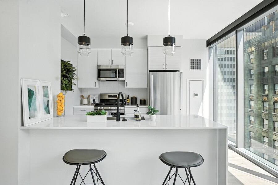 Ready to live in the middle of the action? These luxury apartments are located in Chicago s Loop, right on the edge of the Lakeshore East community. Opened in 2022, this beautiful high-rise is just steps away from the city s most popular attractions walk to Millennium Park, shop Michigan Avenue, stroll along the Chicago River and catch the sunrise over the lake. Standing 47-stories, the skyscraper s luxury units boast all kinds of modern features. Sophisticated black and white kitchens, sleek bathrooms, huge closets and floor-to-ceiling windows that let the sunshine stream in. Millie s shared amenities are designed with a Scandinavian aesthetic. You ll find resort-inspired terraces, cozy lounges and a state-of-the-art fitness center. They didn t forget your furry friend, either there s an entire lounge dedicated to pets at this dog-friendly apartment building (breed restrictions apply, but there is no weight limit)! Best of all live here, and you get to call downtown Chicago