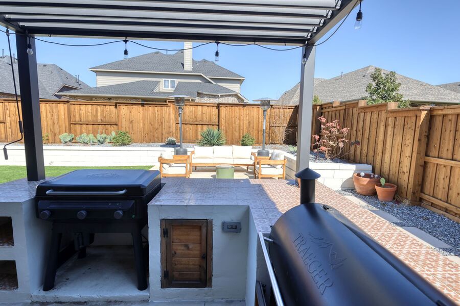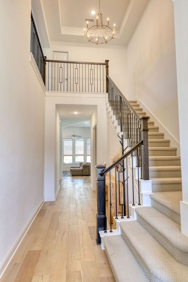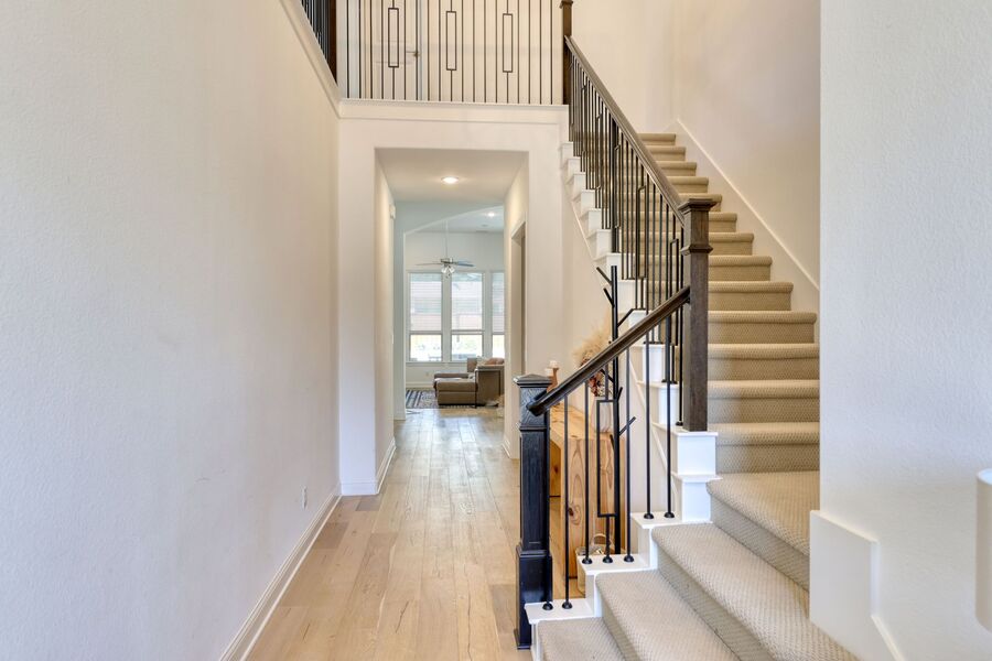 Beautiful 4-bedroom, 4.5-bathroom home in award winning Windsong Ranch Community. Master suite, two secondary bedrooms, study and fully furnished gym on first floor! Additional bed, bath and game room upstairs. Nice upgrades throughout including wood floors in downstairs living areas, designer tiles in the master bath, granite kitchen countertops, upgraded kitchen backsplashes and more. Backyard is ready for entertaining with an outdoor smoker, BBQ grill and several outdoor seating areas, a Pergola with a movable roof and durable turf yard. Get ready to enjoy summer here at Windsong Ranch by cooling off in the 5-acre Crystal Lagoon, play tennis, fish in the stocked ponds or pick your favorite mountain bike trail for a little extra fun. This house ticks all the boxes and will not last long. Call RPM Lakeview 214-603-0563 to schedule a showing.