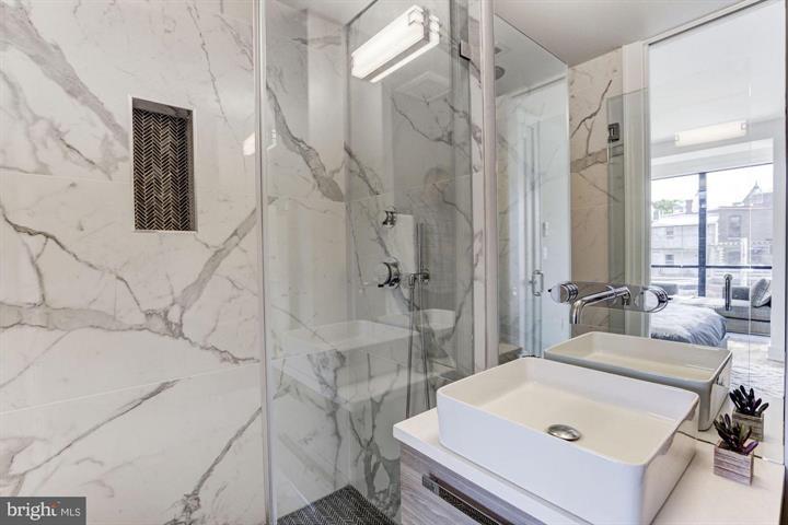 Get yourself the gift of a new apartment with glowing natural light, freshly painted walls, tall ceilings, recessed lighting, lovely living room, state-of-the-art chef's kitchen, dark custom kitchen cabinets, microwave, oven, under cabinet lighting, stove with overhead fan, two spa-like bathrooms, format marble tile, sleek vanities, spacious bedrooms, excellent closet space, and in-unit washer and dryer. Building amenities include a breath-taking rooftop deck with lovely views of the National Cathedral and sophisticated lobby entrance.