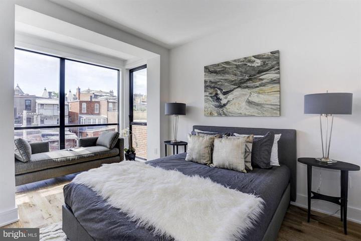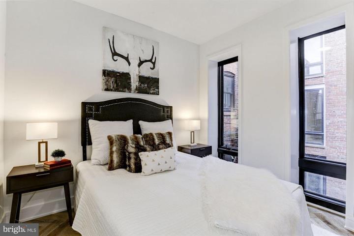 Adams Morgan apartment featuring custom, hand-cut iron-brushed hardwood floors, lovely private balcony, and glowing natural light throughout!