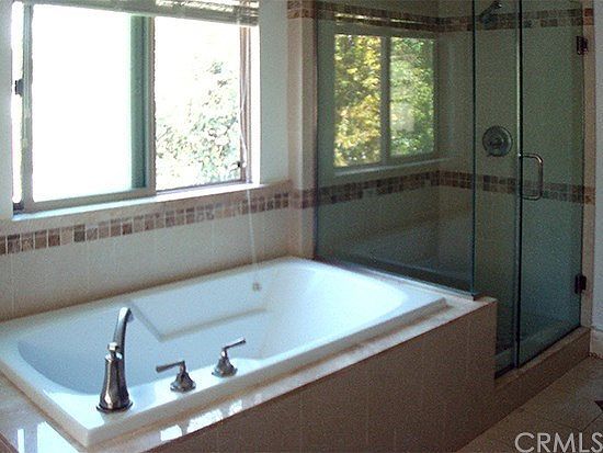 Master suite has a large walk-in closet, spacious bathroom with double sink with vanity, shower and bathtub.