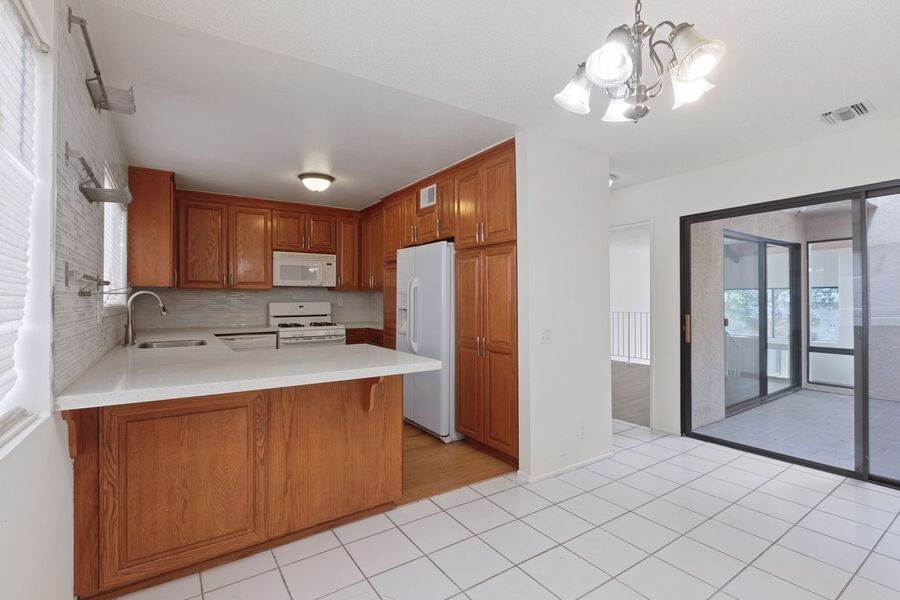 This spacious tri-level townhome in the desirable Ranch Los Charcos complex offers 2 master bedrooms on the top floor, providing privacy and comfort.