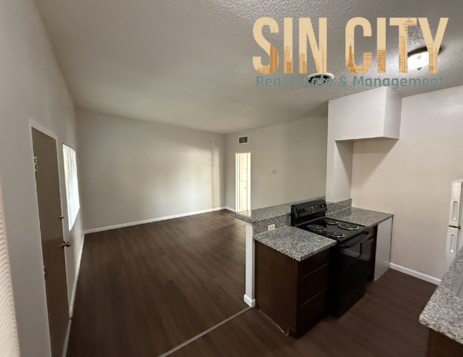 This move-in ready, 1-bedroom, 1-bathroom apartment is located in a gated complex with high-security cameras for added safety. The second-level unit features an open floor plan with modern laminate flooring throughout.