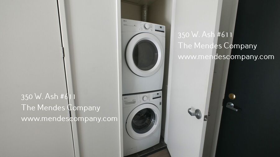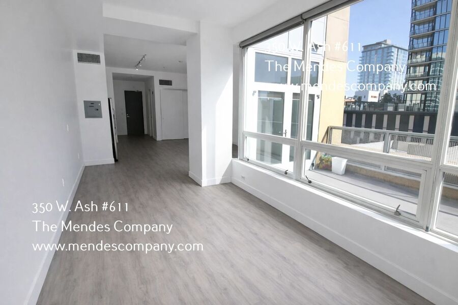Welcome to 350 W Ash Unit #611, a spacious studio condo with a private patio just steps from Little Italy’s most popular bars/ restaurants and right across from the Fit Gym Little Italy. This well designed condo features an open layout with a defined sleeping area, modern finishes throughout, and an in-unit washer and dryer for everyday convenience. Located in the heart of Downtown San Diego, you’ll enjoy unbeatable access to top dining, nightlife, gyms, and all the energy the city has to offer.