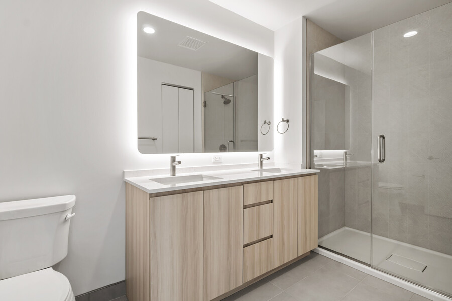 This two-bedroom, one-bath apartment in Chicago s Medical District offers a spacious and practical layout paired with modern finishes throughout. The split-bedroom floor plan provides added separation between bedrooms, making it ideal for shared living or added privacy. Hardwood flooring runs throughout, and the kitchen opens to the living space, creating a natural flow for both everyday living and entertaining. The kitchen includes quartz countertops, stainless steel appliances, and sleek cabinetry, while the living and dining areas offer flexibility for a variety of furniture arrangements. Large windows and high ceilings help create a bright and open atmosphere, and an in-unit washer and dryer adds convenience. The bathroom features a two-sink vanity for added functionality. Residents have access to a full suite of amenities, including a rooftop lounge with indoor and outdoor seating, a well-equipped fitness center, and a co-working space. Additional conveniences such as 24-hour c