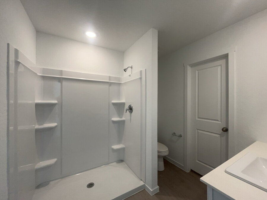 Carpet and vinyl flooring add a warm and durable touch throughout the home. The primary suite offers a private retreat with a walk-in closet, walk-in shower and single vanity ensuite. Three additional bedrooms provide flexible space for a variety of needs.