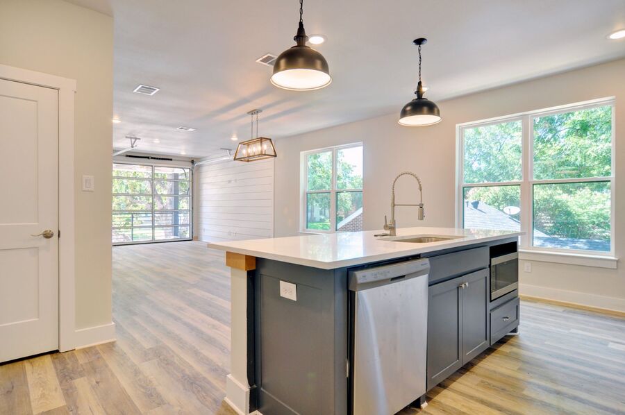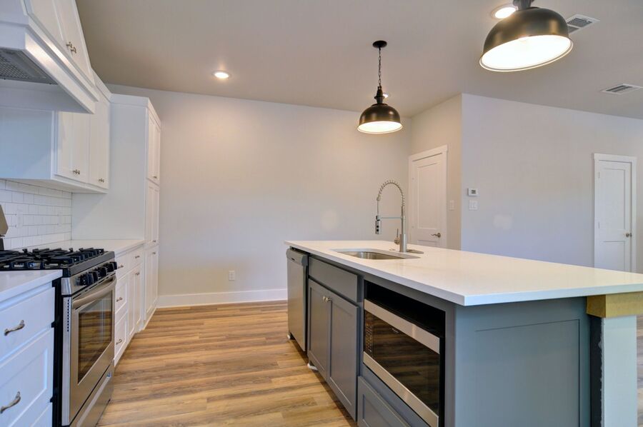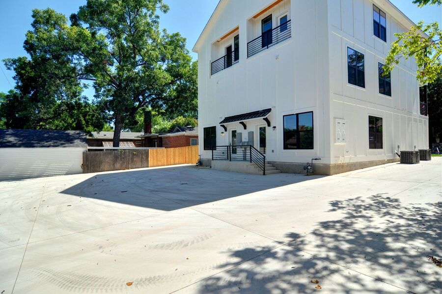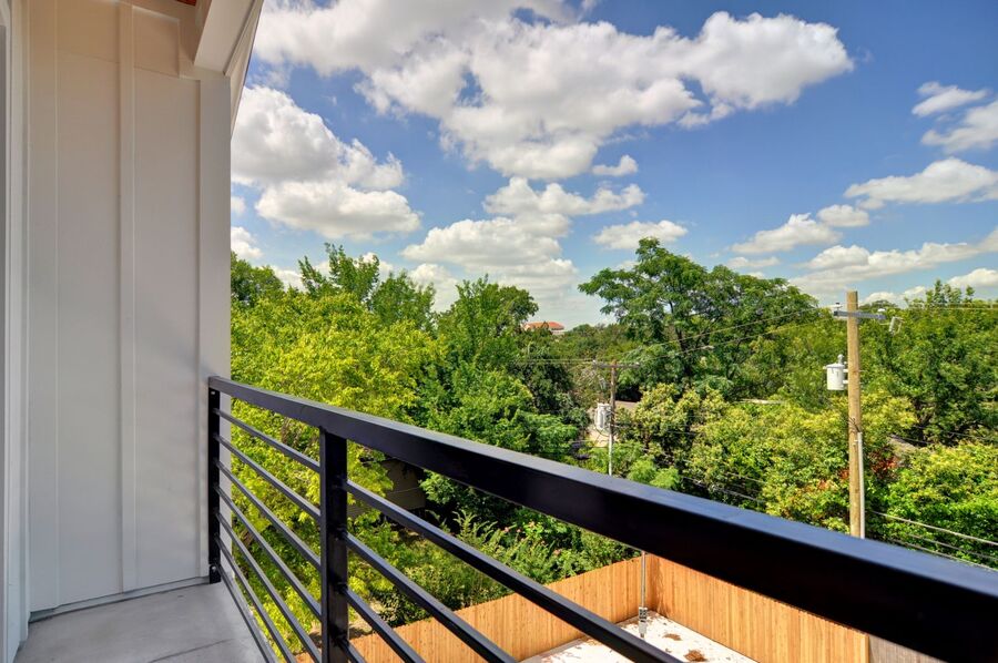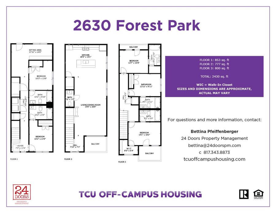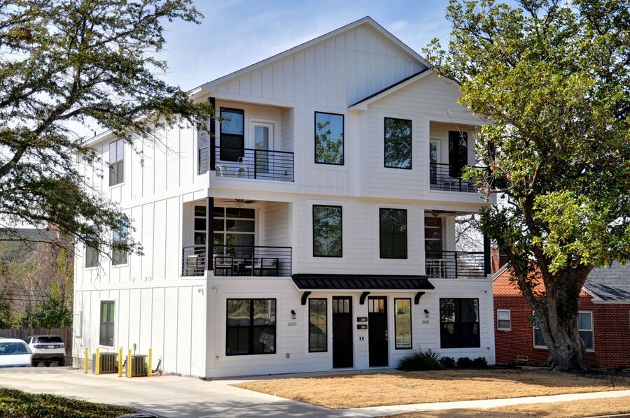 TCU housing at its best. There are 5 generous private bedrooms, each with a private bathroom and private coded door lock. The common floor features solid surface floors, a balcony, large open living area with flat screen TV, powder bath, and a kitchen your parents will envy. There are 2 bedrooms on the 1st floor and 3 on the 3rd floor with a set of washers and dryers on each floor – so no schlepping up and down the stairs to do your laundry.