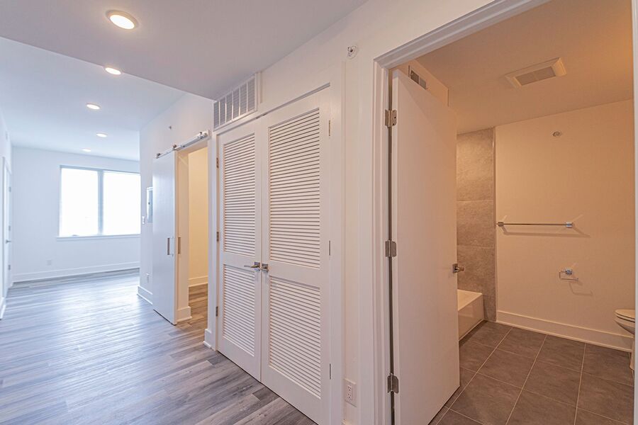 Luxury apartment building at the corner of Ridge Ave and 13th St, just two blocks from the Broad Street subway station and just minutes from surrounding Spring Garden/Fairmount and Northern Liberties Neighborhoods! This gorgeous interior includes amenities such as central air, designer lighting, washer/dryer in unit, and hardwood floors throughout. A modern gourmet kitchen is furnished with a garbage disposal, stainless-steel appliances that include a dishwasher, refrigerator and microwave, in addition to granite counter-tops and elegant designer cabinetry. The bedroom features a sliding door to maximize the space and doesn’t sacrifice the double closet! The beautiful full bathroom has a modern vanity sink with cabinet doors and drawers, and bathtub/shower combination.