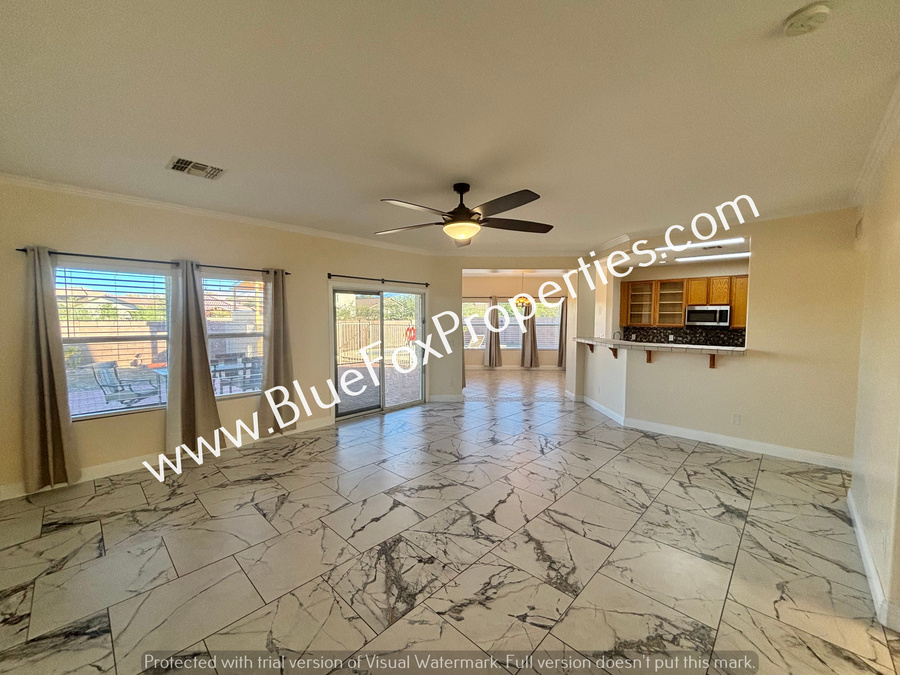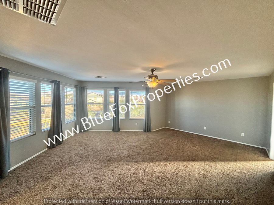 Relax in your own private pool with gorgeous sunset views from this 3,090 sq ft contemporary home, perfectly situated at the end of a quiet cul-de-sac in the award-winning Vail School District and the prestigious Rancho Del Lago golf course community. This spacious 4-bedroom, 3-bathroom residence features a 3-car garage, an expansive upstairs loft ideal for a media room, office, or den, and an inviting open-concept interior with an inviting family room and a separate living room. The large kitchen boasting stainless steel appliances, a room-sized pantry, tile countertops with backsplash. The home also offers a washer and dryer for added convenience and a built-in camera system. The oversized primary suite offers a massive walk-in closet, while the generous secondary bedrooms provide ample space for everyone. With no homes on the west side, enjoy added privacy, open land, and a jogging path right outside your door. The large yard includes a double gate, storage shed, patio for lounging, and a covered porch perfect for taking in those beautiful desert evenings.