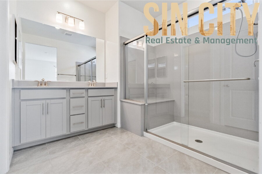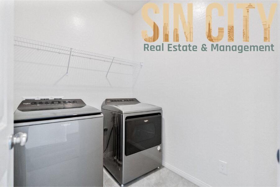 Welcome to this stunning 2024-built home nestled in one of Las Vegas's newest gated communities! This spacious 4-bedroom, 2-bathroom residence features a thoughtfully designed open floor plan with a convenient main-level bedroom and full bath.