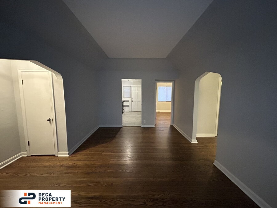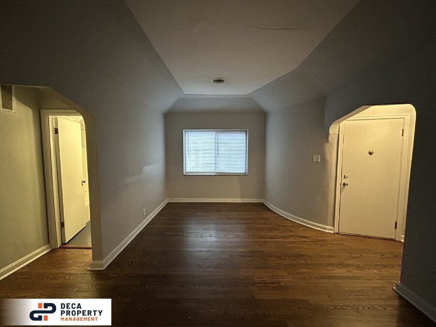 Charming and spacious 2-bedroom, 1-bathroom apartment now available for rent! This unique property sits on a large open lot and features distinctive cylindrical architecture that adds both charm and eye-catching curb appeal. Step inside to a bright and inviting living room with beautiful hardwood floors, tall ceilings, and plenty of natural light flowing through the windows.