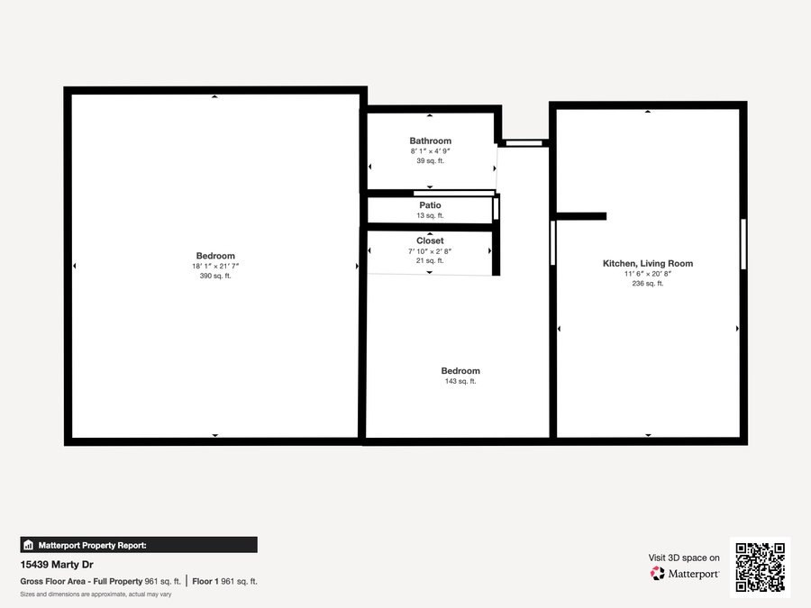 1 bedroom, 1 full bathroom