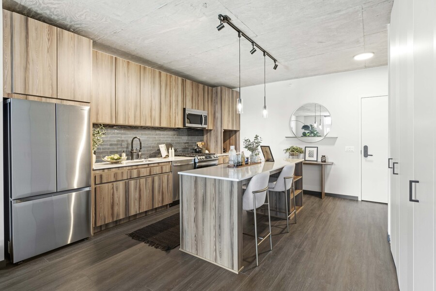 Set in the Fulton Market pocket of the West Loop, this unique community blends a newly constructed 12-story tower with a thoughtfully restored 1920s brick building. The result? Modern comfort with a side of historic character exposed concrete ceilings, original charm, and plenty of sunlight. Choose from studio, one, two, and three-bedroom layouts, all featuring in-unit laundry, keyless entry, USB outlets, and sleek finishes throughout. Kitchens come dressed in quartz countertops, stainless steel appliances, and soft-close cabinetry, while wood-plank flooring ties everything together. Work-from-home days get a serious upgrade with onsite co-working spaces, complete with conference rooms. When it s time to unwind, head to the indoor/outdoor rooftop lounges (the outdoor one has an amazing skyline view!) or enjoy the courtyard equipped with grills and a fire pit. A 24/7 fitness center keeps your routine covered. Commuting is a breeze thanks to the Ashland bus lines right outside y