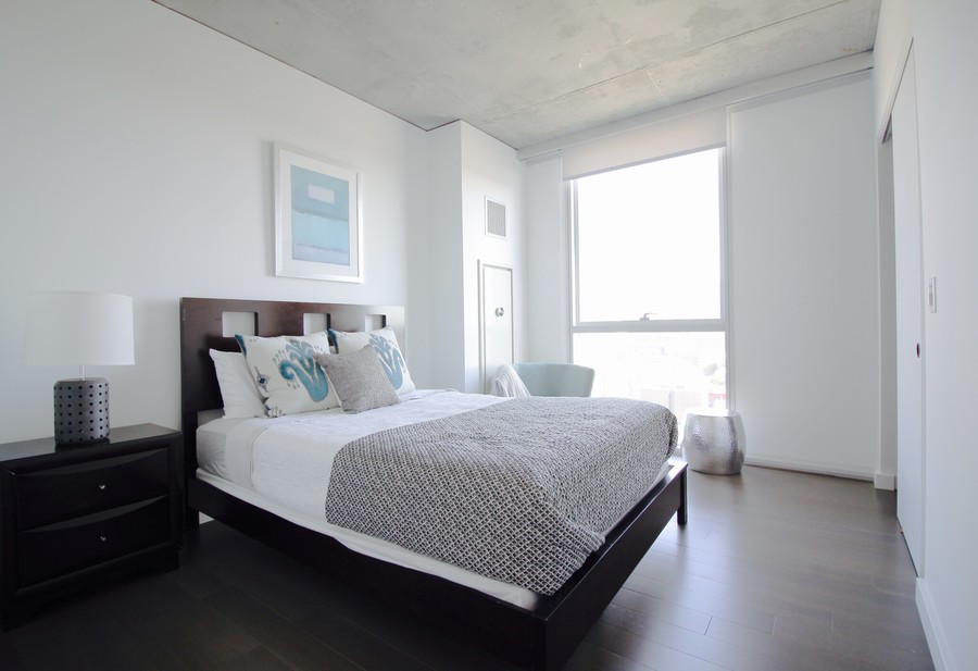 We love this building for a lot of reasons, but mostly because they figured out how to make it beautiful, green and energy efficient without giving anything up. Design, sustainability and community are a priority in this one of a kind setting which offers an impeccably landscaped terrace with private lounges, fire pits and grilling stations, an outdoor pool and sundeck, and a separate rooftop lounge with media room, conference space and fireplace to enjoy the breathtaking city views. Inside, use the lounge with coworking table, modern fitness facility or just enjoy the beautiful artwork and interior space in this 100% smoke-free property. There is a 24-hour security door staff as well.
