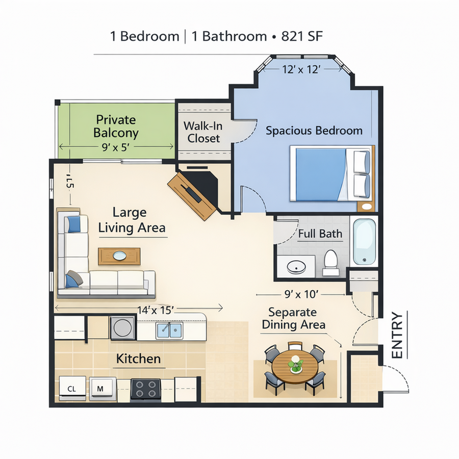 Welcome to the 1 Bed 1 Bath - Gold Floor Plan in Greenville, offering a convenient living experience within 821 sq ft. This thoughtfully crafted layout features modern amenities designed to elevate your lifestyle, including exclusive in-unit services and leisure-focused facilities. Seize the opportunity to enjoy a residence that combines style and comfort. Contact us today to schedule your tour of this exceptional floor plan.