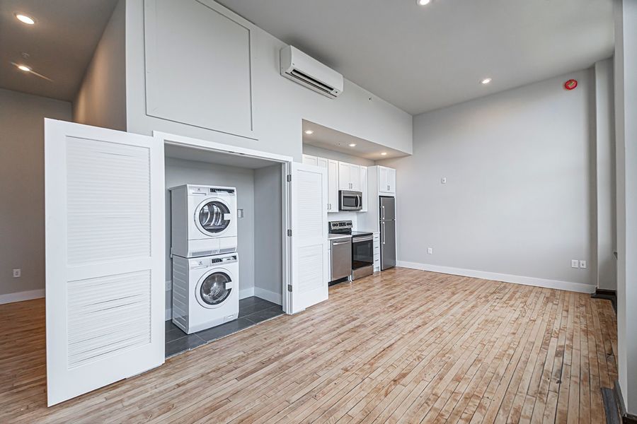 Don't miss this breathtaking larger format studio, 1 bathroom with historic charm, oversized windows and original wood trim finishes! This unit has everything: hardwood floors, mini split system heating/cooling, recessed lighting, plus a washer/dryer in unit! The kitchen has white cabinets with sleek hardware against textured white subway tile back splash, quartz counter top, a garbage disposal and stainless steel dishwasher, microwave, refrigerator and electric range. The bathroom features a vanity with the same counter top that matches the kitchen and shower/tub with a glass door. The Walter George Smith Public School, listed on the National Register of Historic Places, has undergone an amazing transformation to bring you these luxury apartments! All tenants will have access to the two outdoor spaces (over half an acre combined!) on the ground floor and mezzanine patios, and roof deck with stellar skyline views! Located at 19th and Wharton in Point Breeze, you'll be minutes from the Breezy's Deli and Market, American Sardine Bar, Graduate Hospital, East Passyunk and MORE!