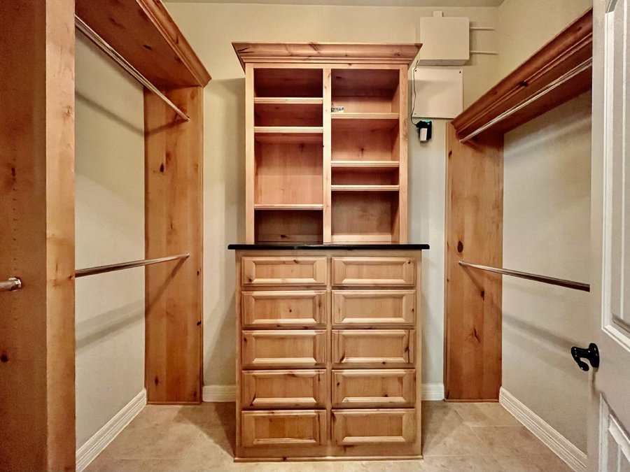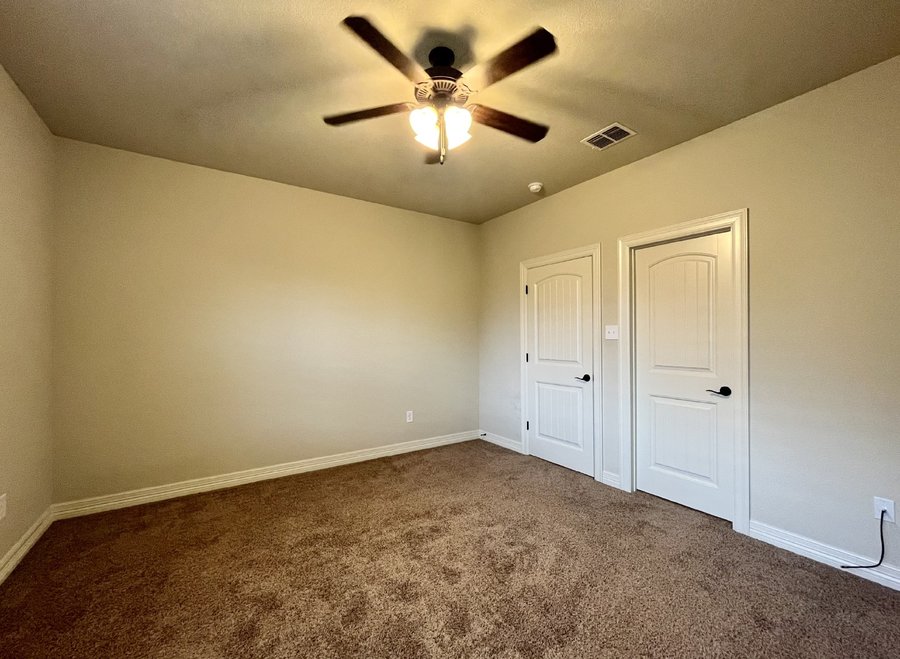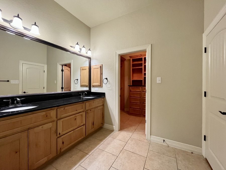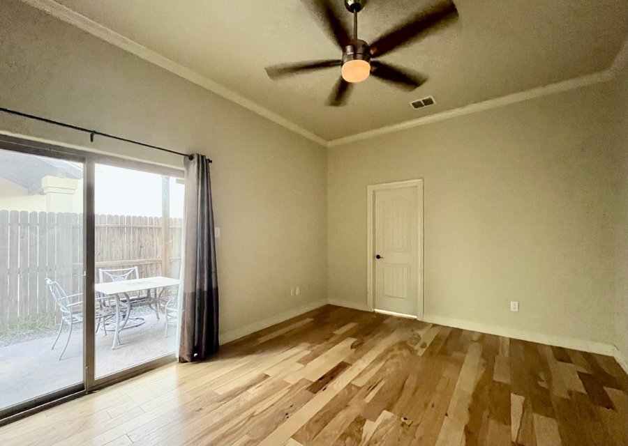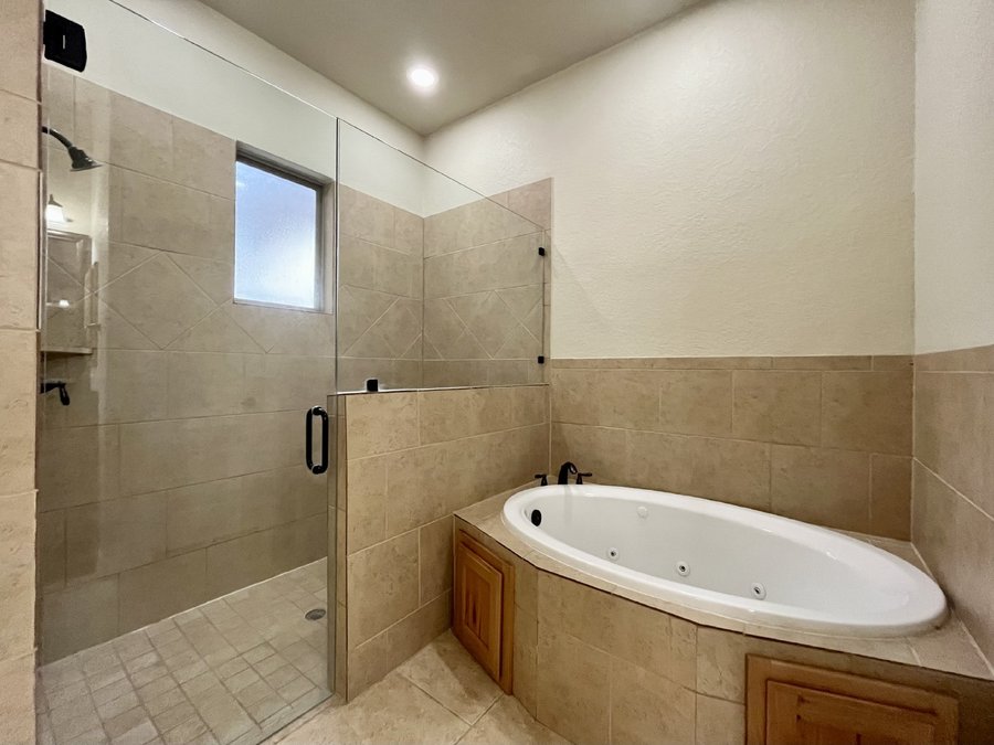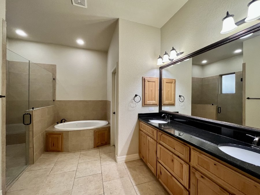The primary bedroom is a luxurious retreat, boasting an ensuite bathroom with a walk-in shower, a garden tub, a double vanity, and a generously sized walk-in closet. Additionally, the primary bedroom offers direct access to the back patio, creating a tranquil outdoor space for relaxation.