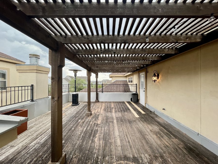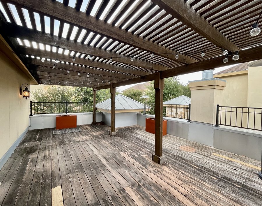 The second floor of this home is adorned with a large balcony, providing an ideal spot for outdoor enjoyment and taking in the surroundings.