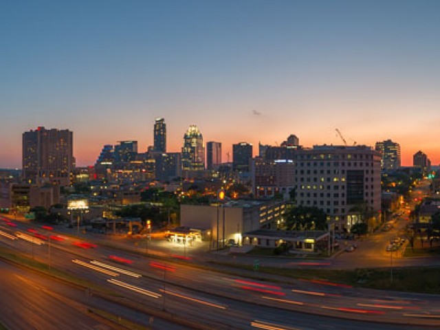 Panoramic Skyline Views of Downtown Austin, the Government Center, UT stadium, and East Austin.