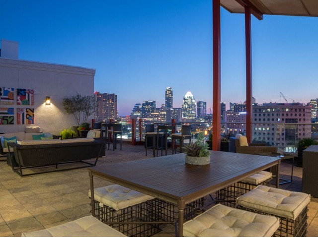 4th floor sky lounge and sky terrace with HDTV and impressive downtown views