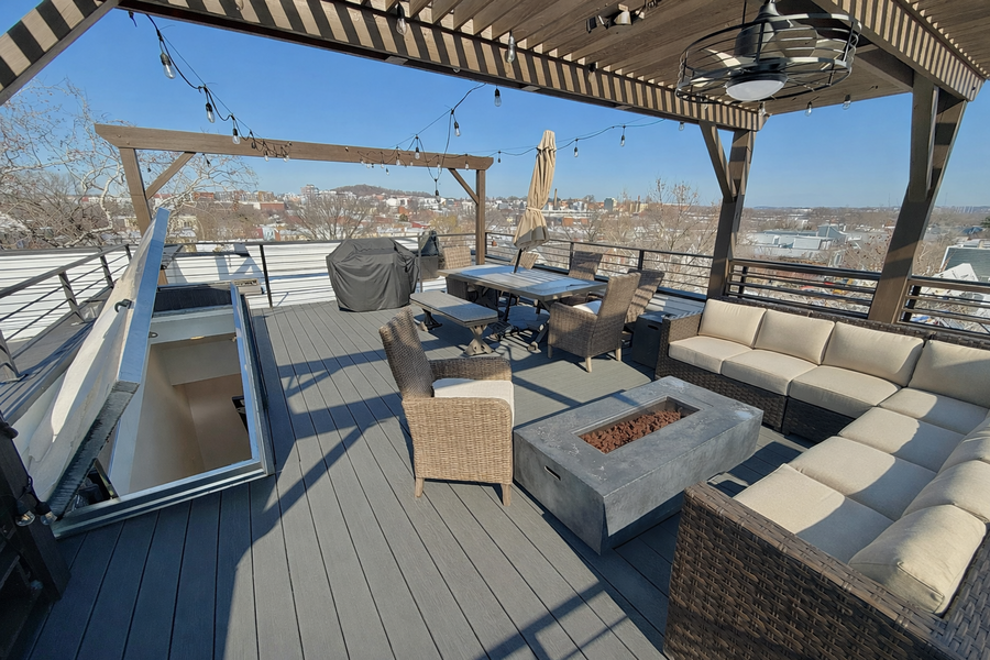 Private rooftop terrace with a custom-built pergola is the highlight of the home, offering stunning 360 degree views of Capitol Hill