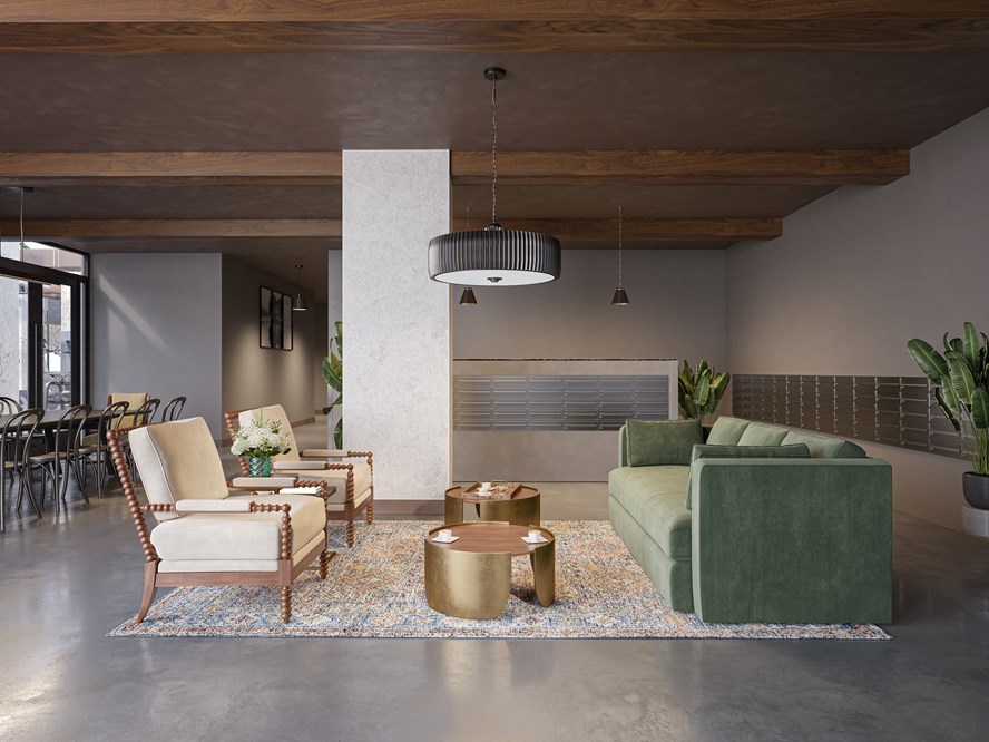 These apartments are high on stylish details with industrial-chic light fixtures, polished concrete floors and sky-high ceilings. Each unit includes stainless steel appliances, a gas range stove, an in-unit washer and dryer, a bold tile backsplash, and sleek bathroom with glass-enclosed rain shower. Select apartments also feature balconies, walk-in closets and kitchen islands.