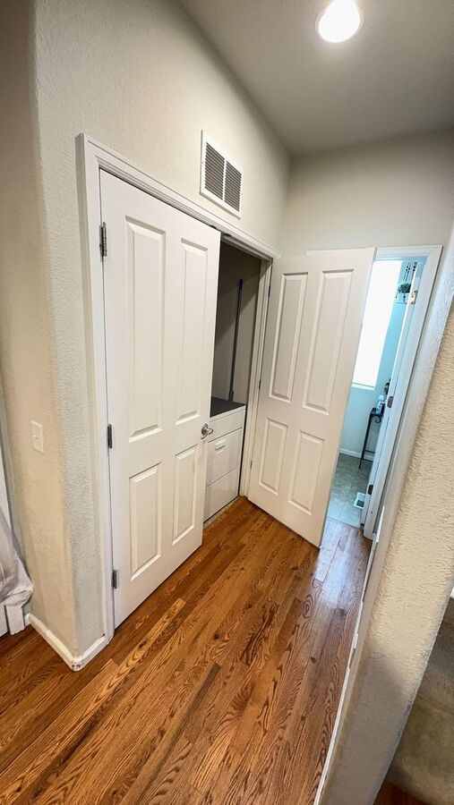 • Guest bath with double sinks & linen closet