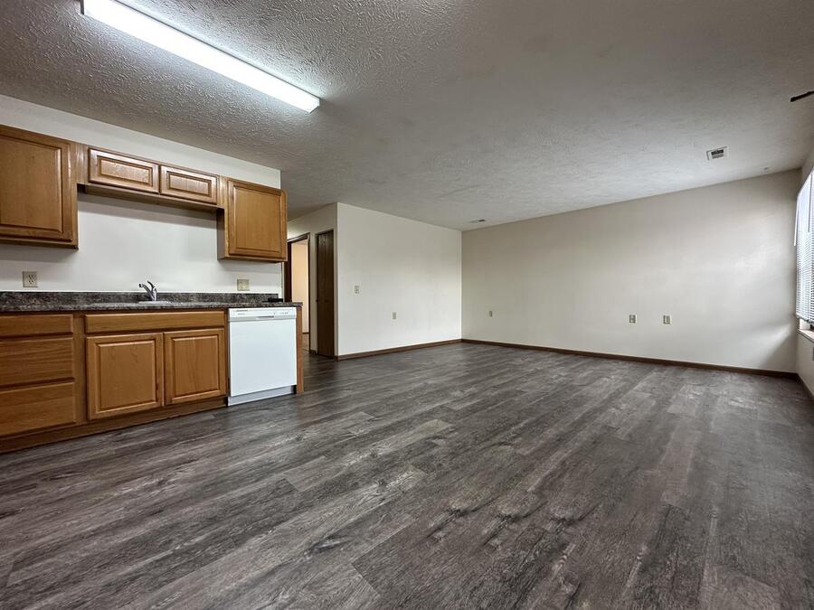 This is our three bedroom, one bathroom floorplan with over 1000 square feet of living space. Everything is on one level including the washer and dryer hookups! There is a spacious kitchen and living room with an open floor plan. The three bedrooms offer cozy carpeting and plenty of space. Please call a member of our friendly leasing staff for more information!
