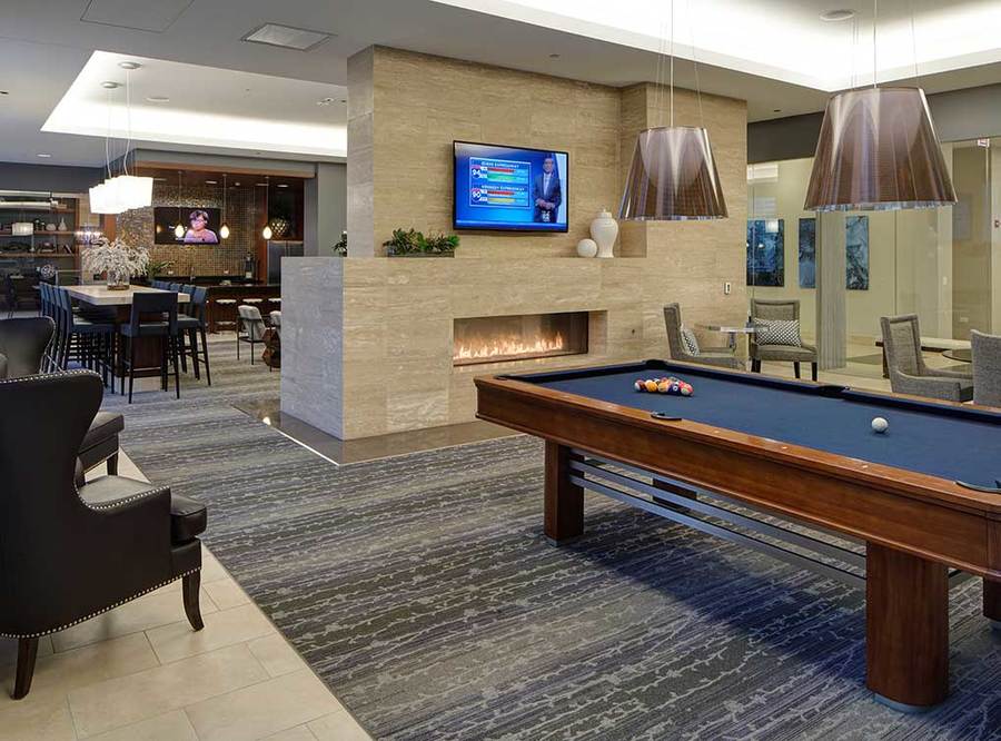 Located in the heart of River North, you can t get much closer to the action. Enjoy tons of shops, restaurants, and evening entertainment right outside your door. And, you re only a short walk to The Loop for your downtown commute. This state-of-the-art property offers some amazing amenities, including a fitness center with a yoga/pilates studio, an outdoor heated pool with private cabanas, TVs and grilling stations, and a resident lounge and club room with a gourmet kitchen. There s even a resident lounge with a fireplace. Top it off with a billiards table, private theatre and golf simulator and you ll have the best of all worlds in your apartment residence and neighborhood. The building is 100% smoke-free and has a 24-hour door staff.