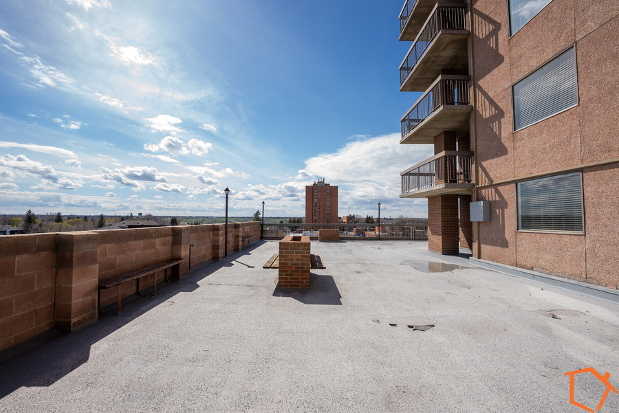Downtown Condo Complex features Rooftop Patio, Garden Terrace, Activity Room, Elevator, Gym with Sauna, Secured Entry, Onsite Mail Delivery, Coin-operated Laundry with Wash Sink & Folding Table and Secured Covered Parkade.