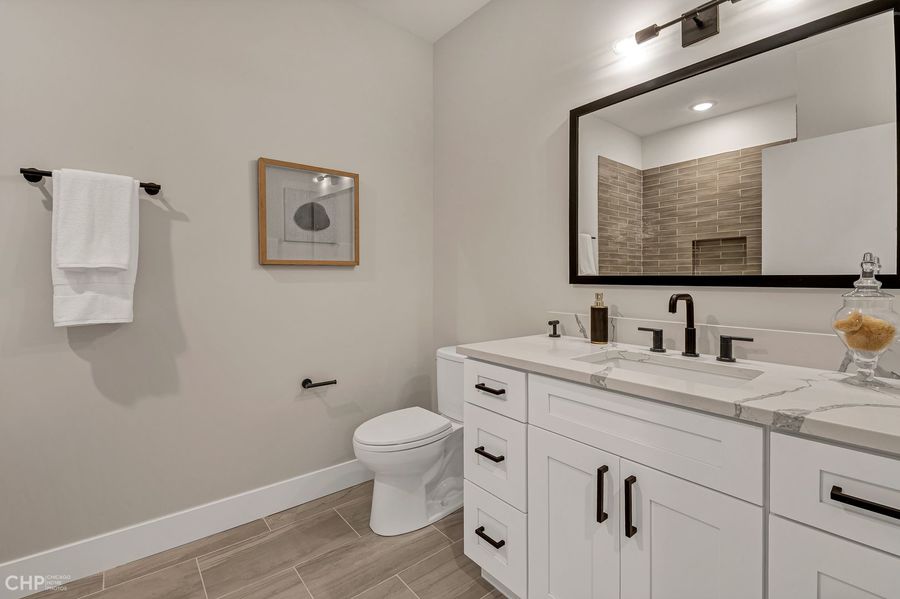 • Luxury Engineered Wide-Plank Flooring, Porcelain Tile In Bathrooms