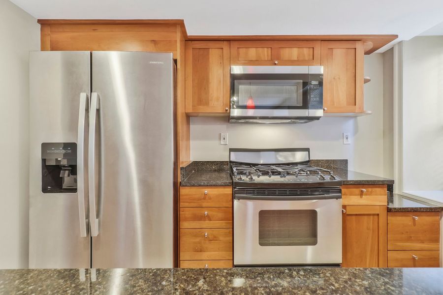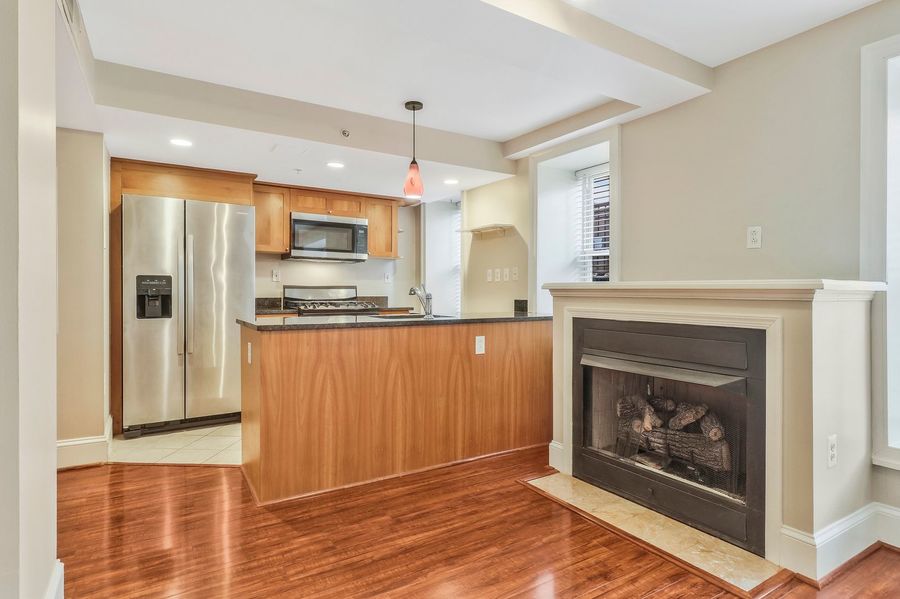 Enter this stunning one-bedroom abode and be led through a spacious floor plan that seamlessly connects the living, dining, and kitchen areas. Oak hardwood flooring, large double-pane windows, and a charming gas fireplace create the perfect setting for entertaining friends or enjoying a good novel, glass of wine, and cozy night in your own nest! The functional kitchen area contains plenty of cabinet space, granite countertops, stainless steel appliances, and a gas range.
