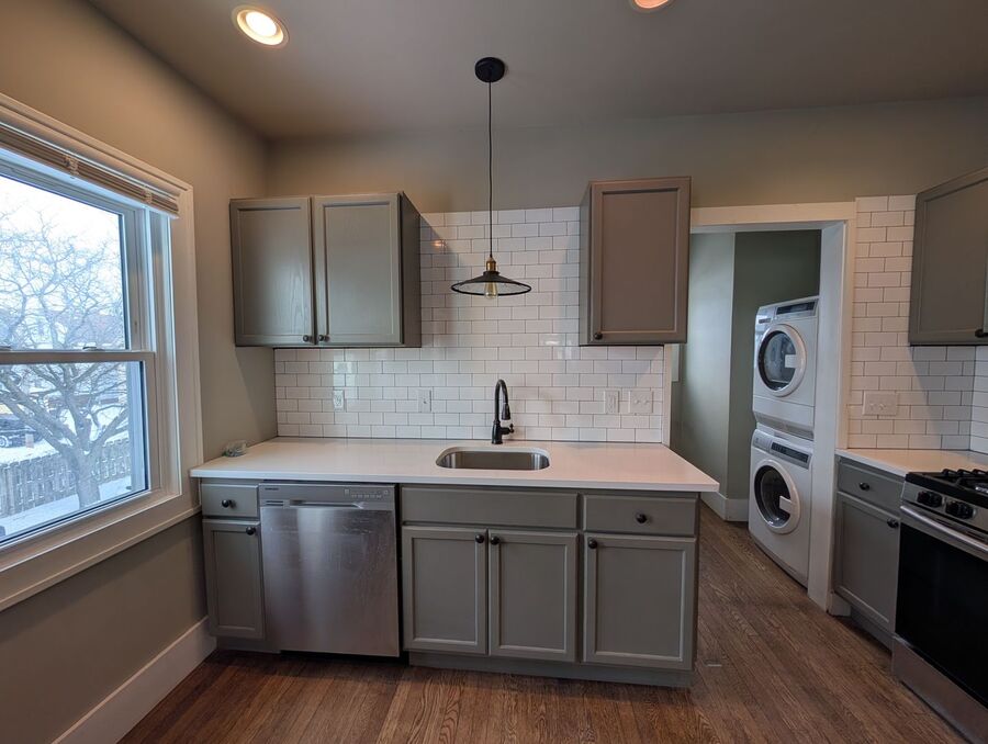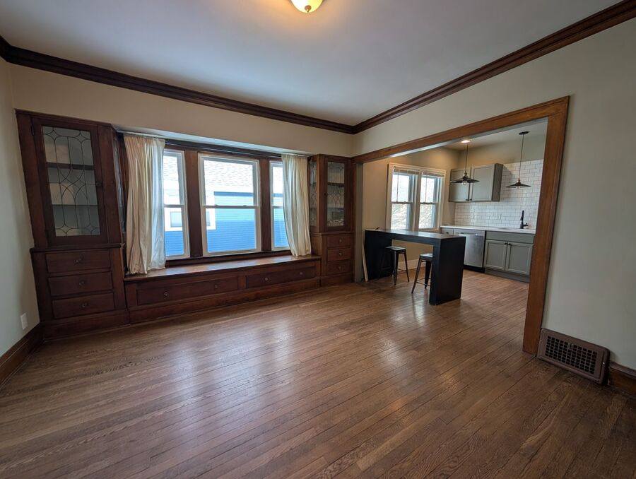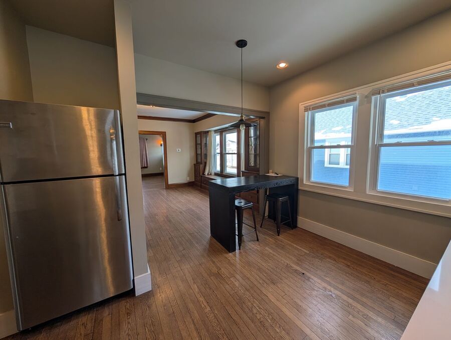Welcome to this stunning 2-bedroom, 1-bathroom apartment located in the vibrant neighborhood of Lakewood, OH. This modern, updated apartment boasts a range of amenities designed for comfortable and stylish living. The open-concept layout is complemented by hardwood floors and a decorative fireplace, creating a warm and inviting atmosphere. The kitchen is a chef's dream, featuring stainless steel appliances and an updated design. The bathroom is equally impressive, with a walk-in shower and modern updates. Both bedrooms are generously sized, offering ample space for relaxation. The apartment also includes in-unit laundry and central air for your convenience. Additional features include a balcony, perfect for enjoying the outdoors, built-in cabinets in the dining room for extra storage, and additional storage in the unfinished attic. The apartment has been freshly painted, adding to its appeal. Off-street parking is available, adding to the convenience of this fantastic property. Experience the perfect blend of comfort and style in this Lakewood gem.