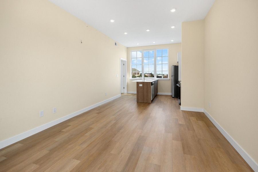 Available Early April: Unit #407 is a fourth-floor 1 bedroom, 1 bathroom corner unit with a private balcony.