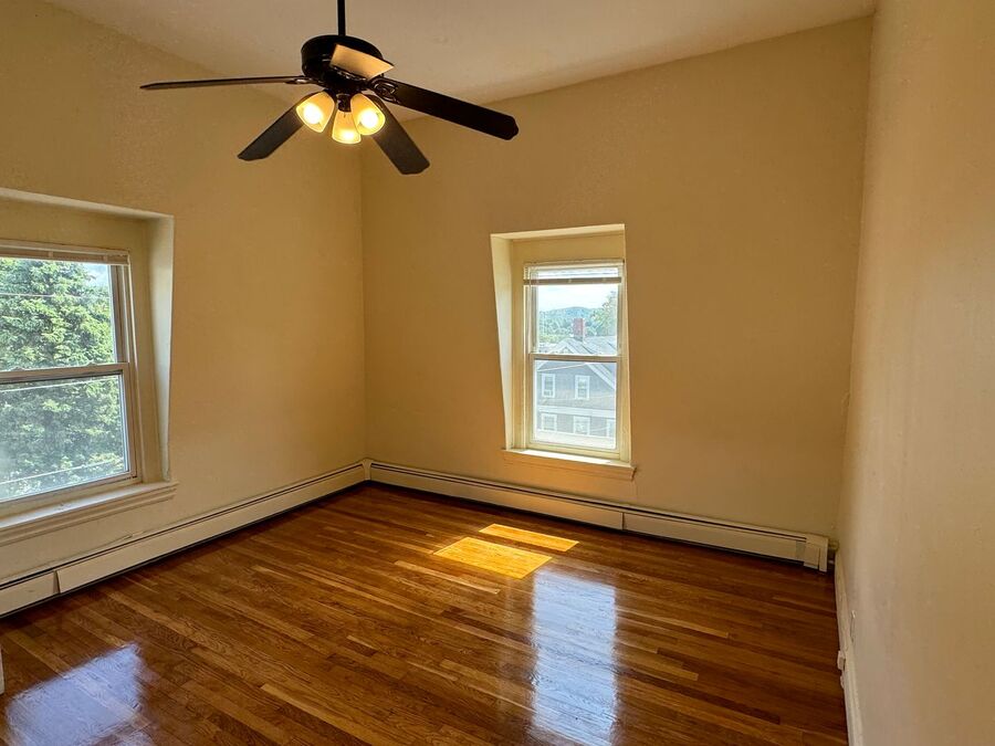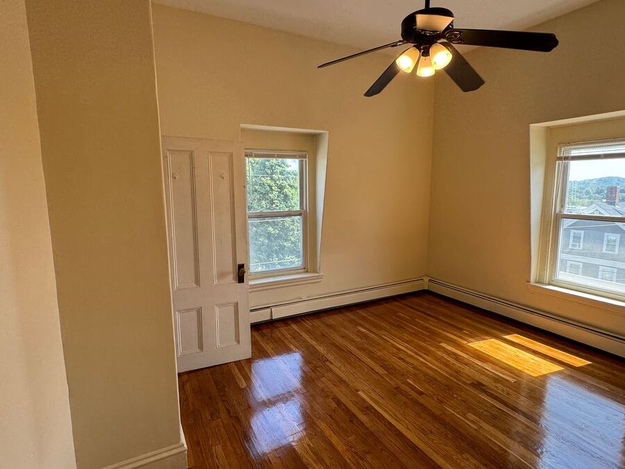 Be the first to get a look at this HUGE 2 bedroom apartment just minutes from Downtown Haverhill! Unit has been recently updated and boasts a bonus room which could be used as office, additional storage, or anything else you can think of! Unit has freshly refinished hardwood flooring throughout and will be delivered with brand new stove and fridge! Property contains a huge multilevel deck around back that units have access to and small private area. Enjoy the best of the weather with the additional outdoor space! 1 assigned parking space included in rent, coin operated laundry in building.