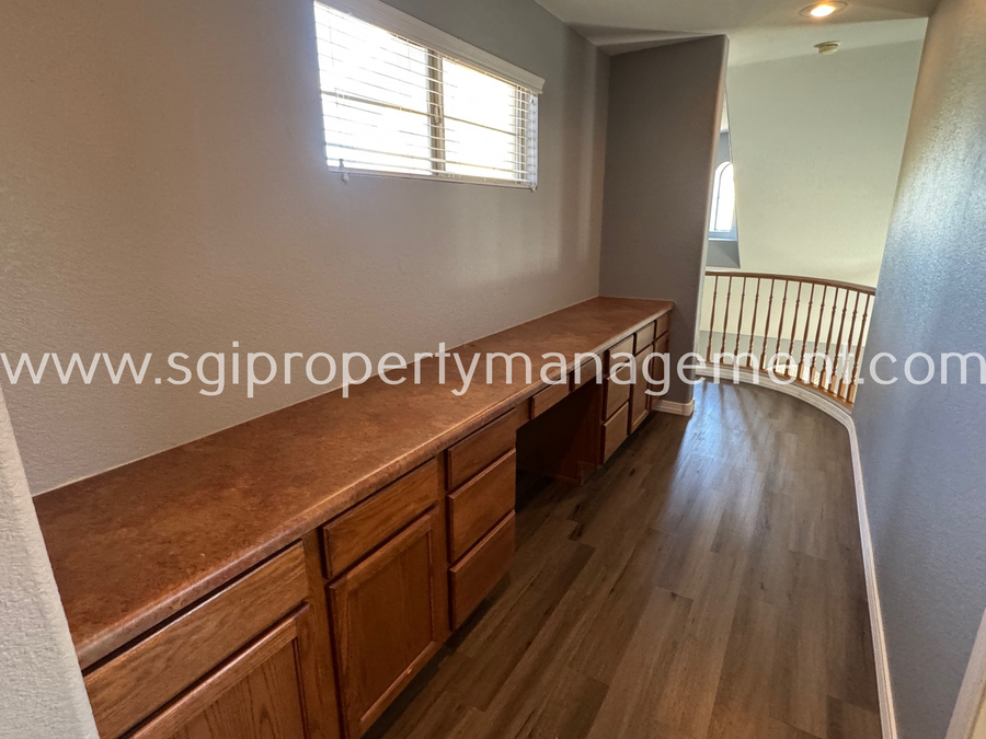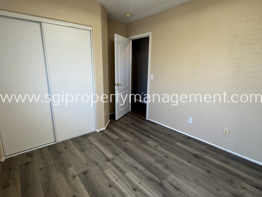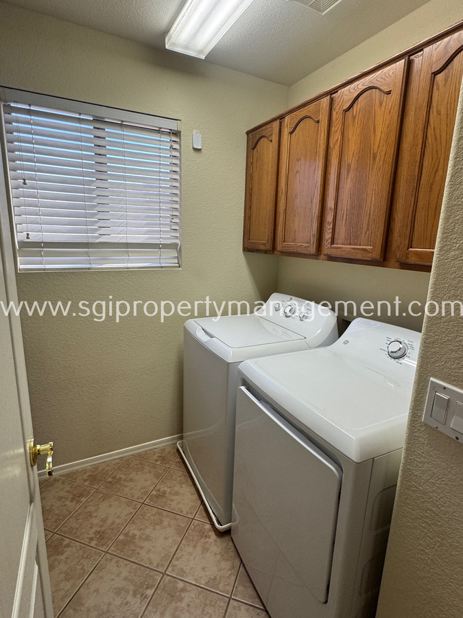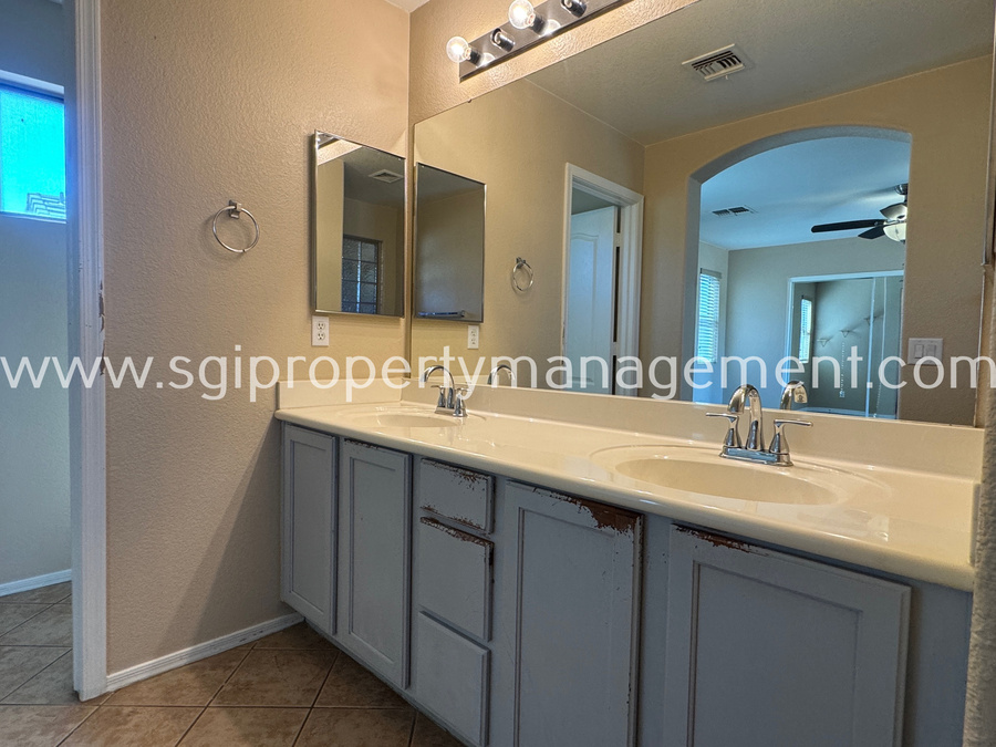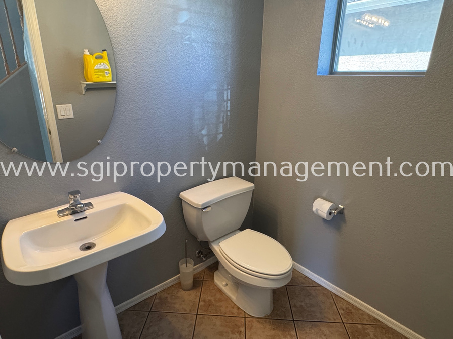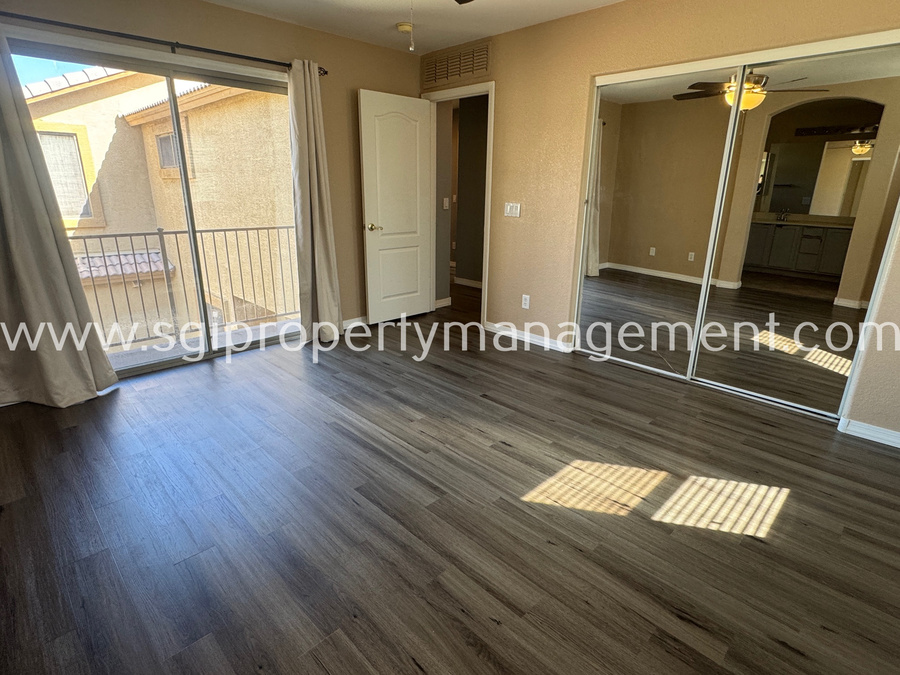 Charming 3 bedroom, 2.5 bathroom home offering 1,899 sq ft in the gated San Michelle community, conveniently located near shopping, restaurants, and the I-60. This well-designed floor plan features a spacious kitchen with an island, abundant cabinet space, built-in desk, and pantry, opening seamlessly to the main living areas with tile and laminate flooring throughout. The private primary suite offers its own bathroom, walk-in closet, and a private deck. Enjoy a low-maintenance backyard with a patio and spacious side yard. Residents of San Michelle also enjoy access to a community pool and playground.1 small pet allowed. Lessee to verify all facts.