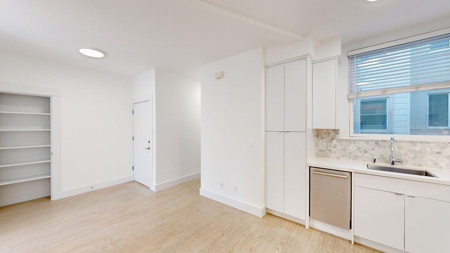 The apartment features modern updates throughout, including a fully remodeled kitchen and the convenience of in-unit laundry. While there is no parking available and utilities are not included, the apartment’s prime location ensures you’re close to public transit, cafes, restaurants, and local shops—perfect for city living.