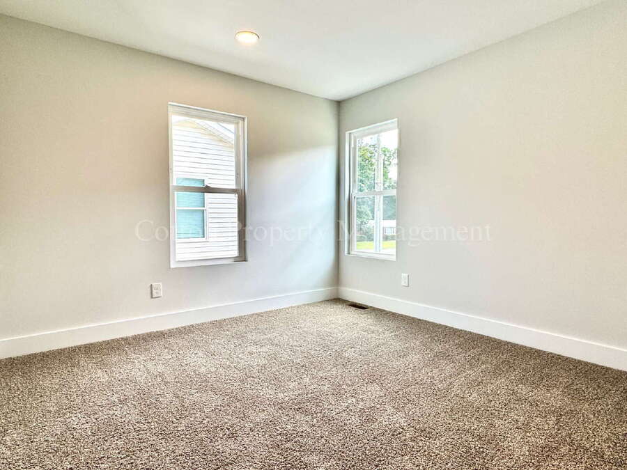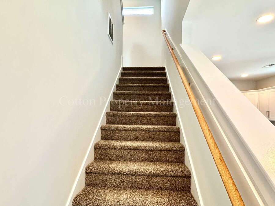 Luxury vinyl flooring adorns the downstairs! Kitchen boasts recessed lighting, granite countertops, stainless steel appliances including built in microwave, smooth top range, dishwasher and side by side fridge. Open concept downstairs with half bathroom. Upstairs features plush carpet and primary bedroom with vaulted ceilings, walk in closet and dual vanity sinks. Two additional bedrooms and another full bathroom on the second floor.