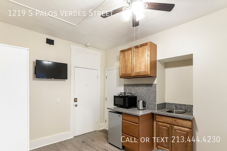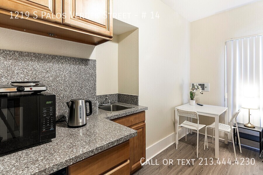 Welcome to our fully furnished studio apartment in the heart of San Pedro, CA. This cozy space features laminate flooring, a ceiling fan, kitchenette, wardrobe closet, and vertical blinds for your convenience. With 24-hour maintenance and online payment options, you can rest easy knowing that your needs will be taken care of promptly. Don't miss out on this convenient and comfortable living space in a prime location. Contact us today to schedule a tour!