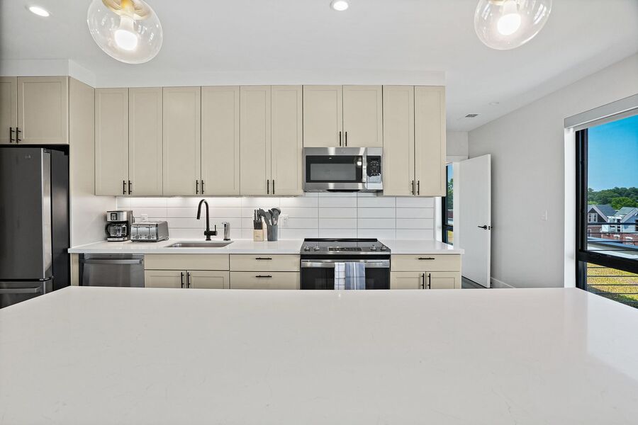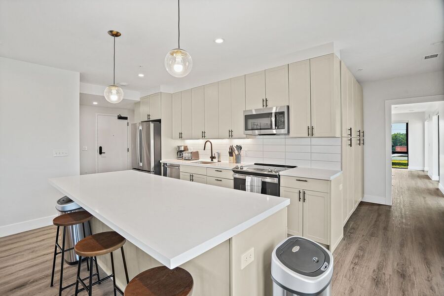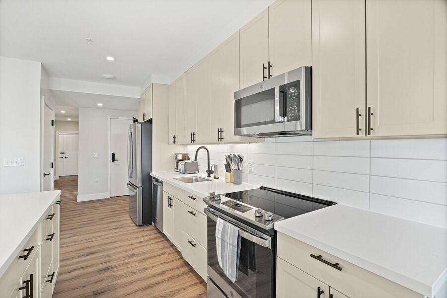 Our thoughtfully designed suites come fully furnished in the kitchen and living areas and include: