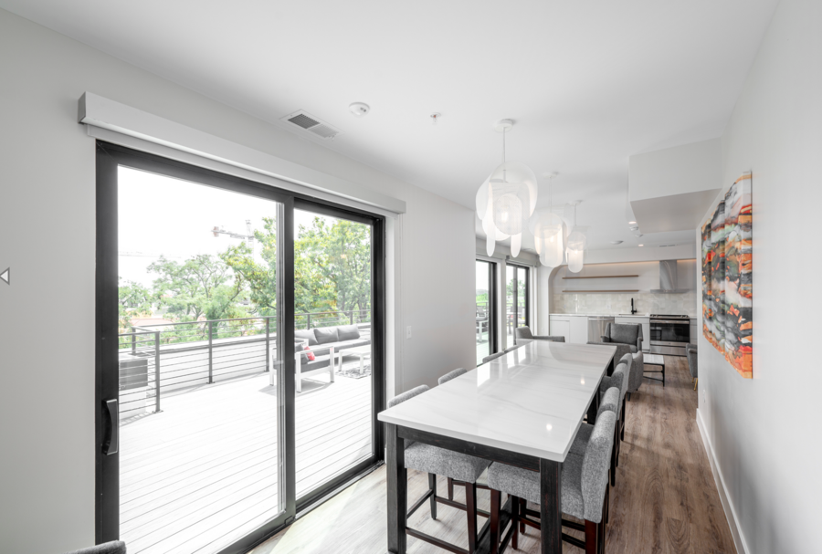 Our 6-bedroom penthouse suites are located on the top floor and have private rooftop patios. Each bright and spacious private bedroom includes a full-size bed and nightstand.