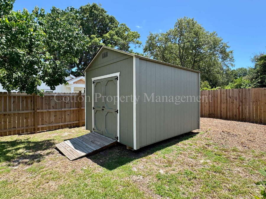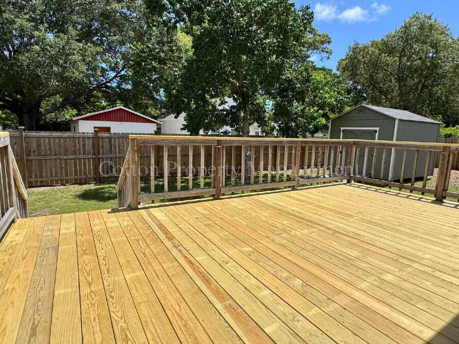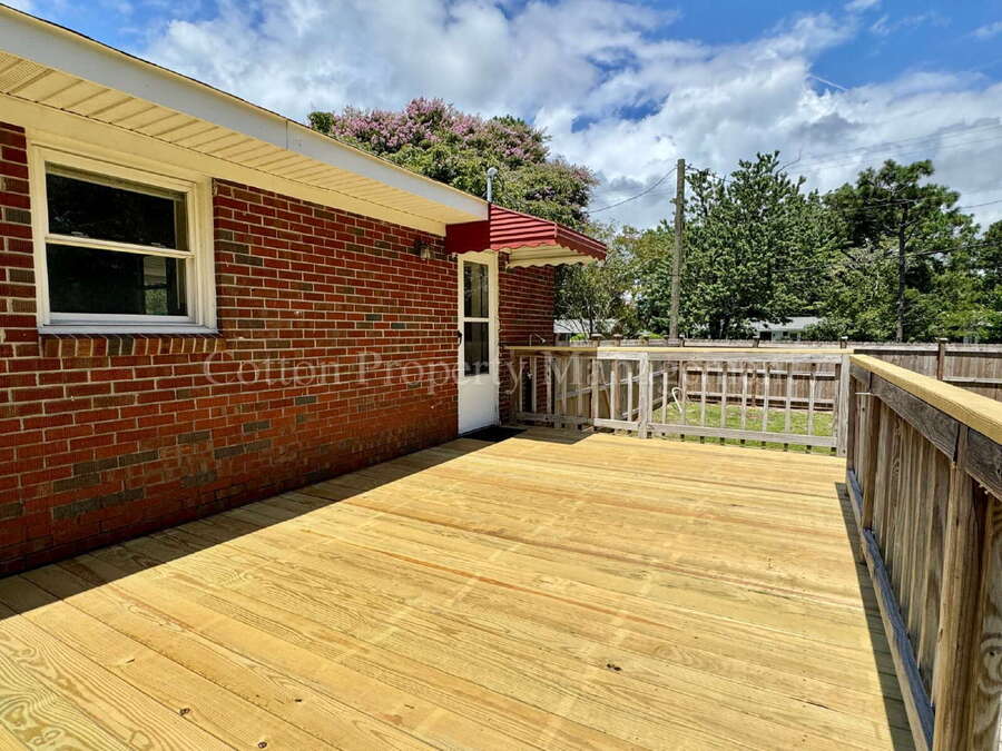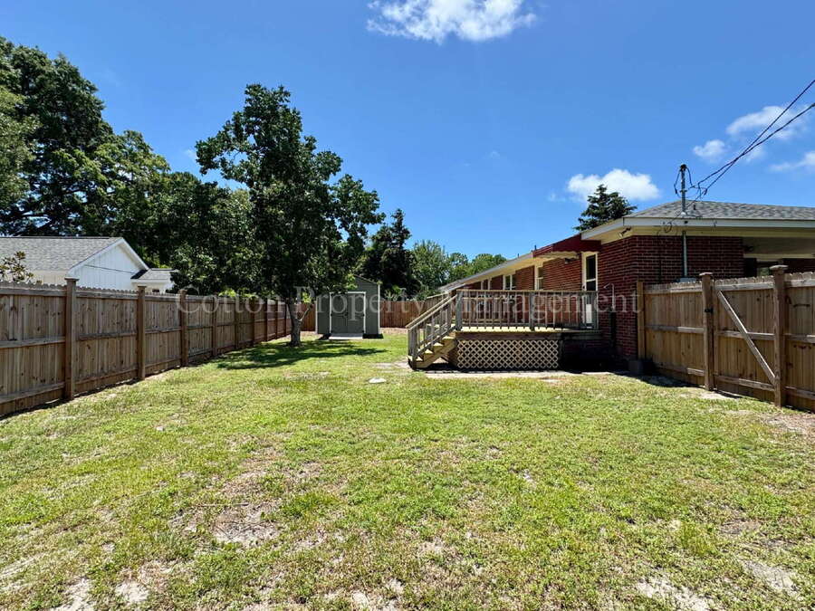 Welcome home to this lovely updated brick ranch, boasting 3 bedrooms and 1.5 bathrooms. Situated on a large corner lot, in this classic home find lots of cabinet space in the freshly painted kitchen, and washer and dryer for your convenience. Out the back door enjoy the pet friendly backyard with full fence, deck and a shed for your projects or storage. Hardwood flooring throughout the space. This home is centrally located near Mayfaire Shopping Center, Wrightsville Beach and much more.