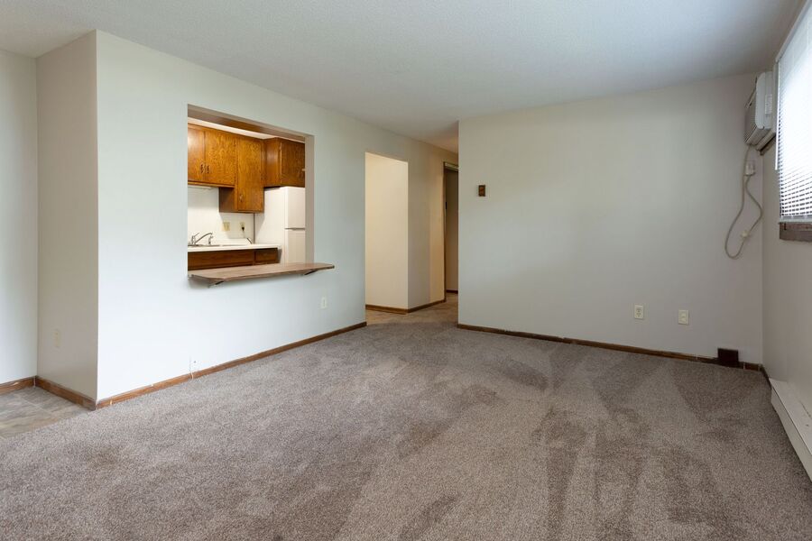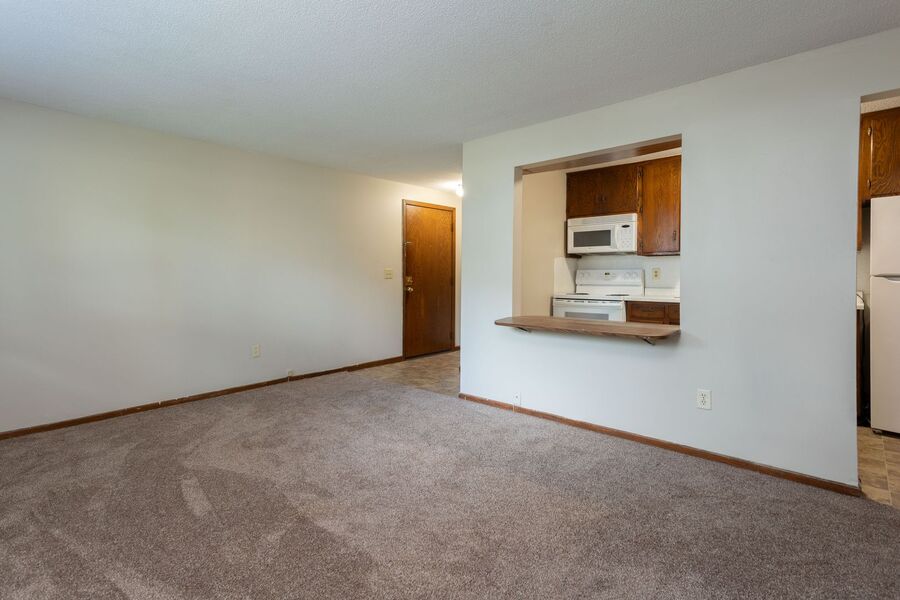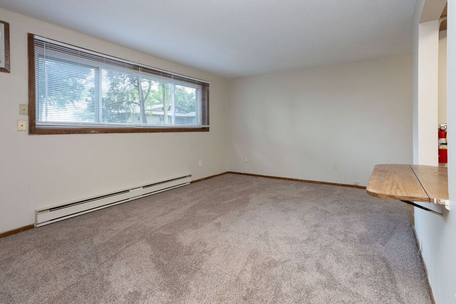 Spacious living room with eat-in kitchen