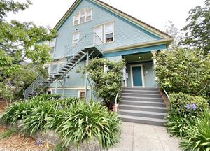 This large 6 bedroom 2.5 bath home features a big kitchen with plentiful storage and counters, dishwasher and gas stove. The living room has beautiful hardwood floors, fireplace and washer/dryer room attached to the unit. There is a shared side yard with fruit trees and a spacious shared parking area suitable for multiple cars.