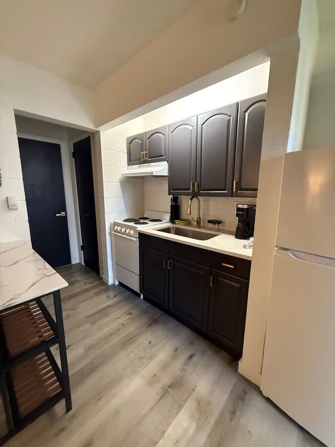 - Full furnishings including but not limited to: bed, television, couch, and kitchen table