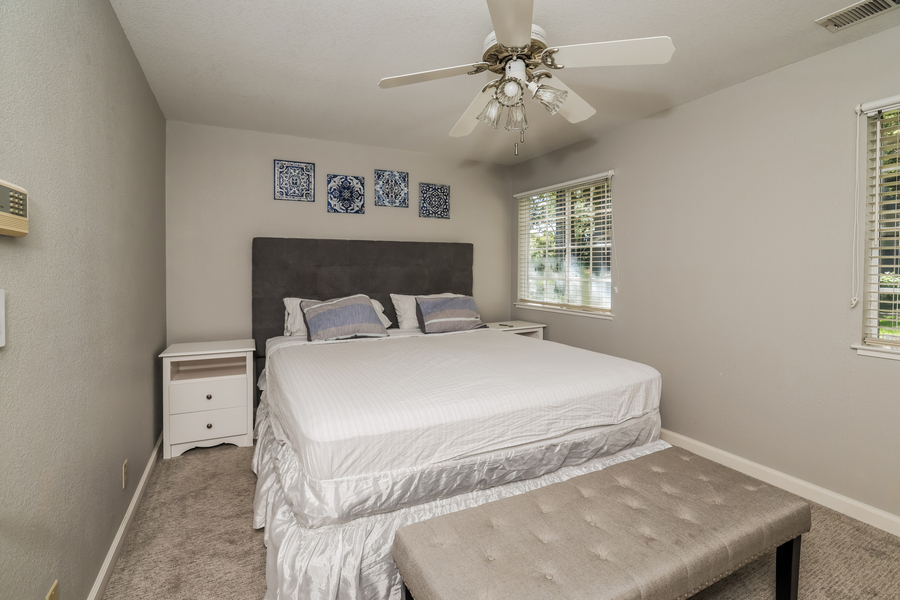 This fully furnished 3-bedroom, 2.5-bath condo offers a comfortable and practical living space in a gated community in Hayward. The two-level layout features an open main living area with plenty of natural light, a fireplace, and a dining space that connects to a private patio. The primary bedroom is located on the main floor, adding convenience and flexibility.