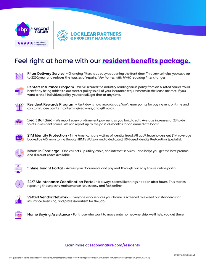Welcome to Renting with Locklear Property Management, All residents are enrolled in the Resident's Benefit Package (RBP) for $55.00/month (not included in rental rate. See flyer for more information).