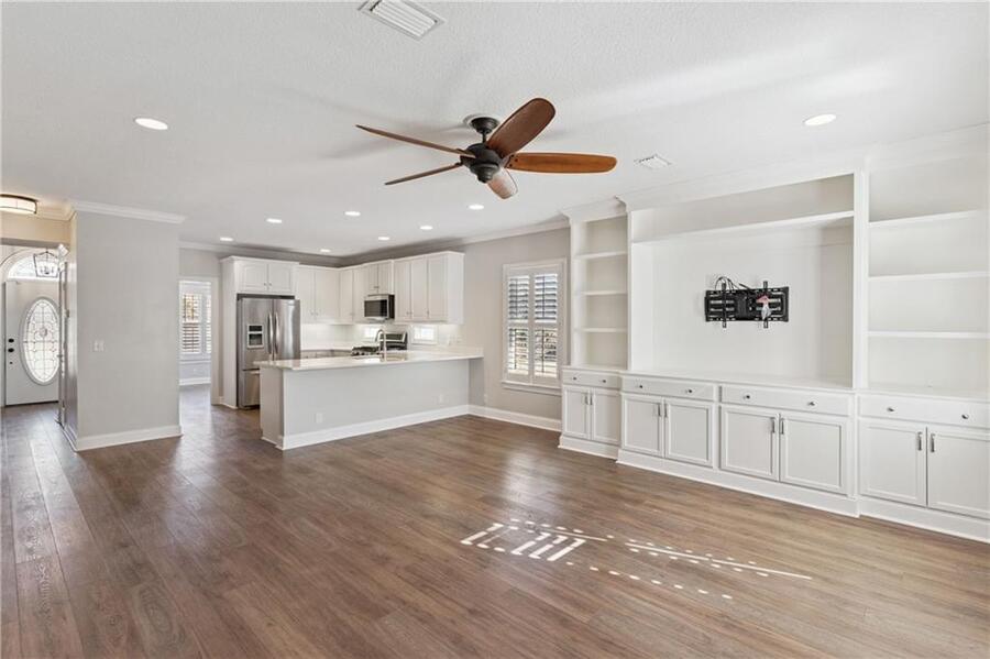 Inside the home you have an open kitchen/living room floor plan. There is also a formal dining room and a bonus area that could serve as an office or playroom.