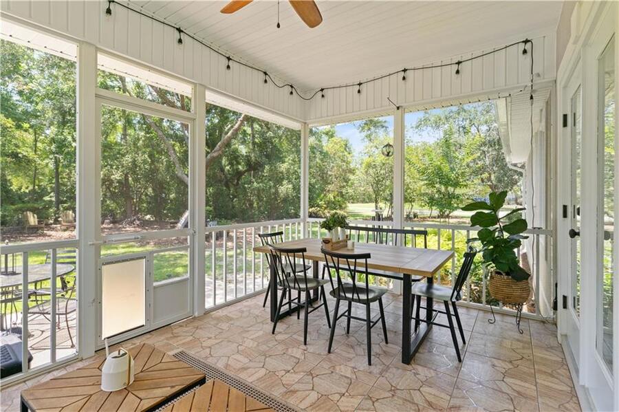 This home sits on a lot with mature landscaping (and landscaping is included in rent), lots of yard space and a beautiful enclosed back porch. You can enjoy your dinner outside or just relax with a cocktail while watching the sunset. There are two dog collars and an electric fence to keep your pups contained, as well!
