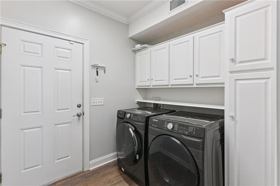 The three additional bedrooms are on the second floor. There is a laundry room that comes with a washer and dryer for your use.